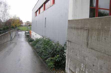 Das Gebäude des Feuerwehrstützpunktes wurde 1988 in Massivbauweise erstellt. Das Gebäude ist 28m lang, 28m breit und 10m hoch. Das Erd- und Obergeschoss besteht aus dem Bereich "Einstellhalle Feuerwehr" und dem Bereich "Büro und Lager". Der Bereich "Büro und Lager" ist auf zwei Ebenen verteilt. Die Stahlbetondecken dienen als horizontale Tragelemente. Das Dach stützt sich auf den Aussenwänden sowie im Bereich der "Einstellhalle Feuerwehr" auf sechs Stahlbetonstützen und im Bereich "Büro- und Lager" auf Stahlbetonwänden ab. Die Zwischendecke im Bereich "Büro und Lager" stützt sich auf Mauerwerkswänden ab. Die Decke des Untergeschosses stützt sich auf den Aussenwänden sowie auf zwölf Stahlbetonstützen und drei Stahlbetonwänden ab. Das Gebäude ist auf Pfählen fundiert.