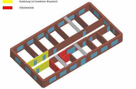 Das Regierungsgebäude Schwyz wurde 1926 erstellt und weist eine Grundabmessung von 28.1m x 15.1m auf. Das Gebäude ist auf Streifenfundamenten fundiert und wurde vom Unter- bis zum 2. Obergeschoss mit vier Geschossen in Massivbauweise erstellt. Bei den Geschossdecken handelt es sich um Rippendecken, welche auf den massiven Aussenwänden aus Mauerwerk sowie den beidseits des Ganges angeordneten Betonstützen aufgelagert sind. Im Bereich der Büroräume sind die Felder zwischen den Rippen als Hourdisdecken ausgebildet. Der dreigeschossige, hölzerne Dachstuhl ist auf der Rippendecke über dem 2. OG aufgelagert. Die Decken über dem 3. und 4 OG sind Holzkonstruktionen. Ursprünglich waren das 4. OG und das DG nicht ausgebaut. Vor ca. 20 Jahren wurden im 3. OG die Zellen durch Büros ersetzt und das 4. OG zu Büroräumen ausgebaut.