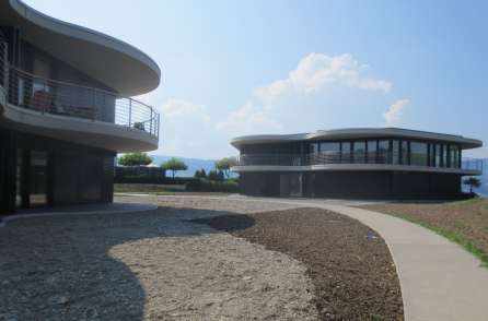 Es handelt sich um zwei sechseckige Mehrfamilienhäuser auf einer gemeinsamen Tiefgarage. Die Erd- und Obergeschosse sind von weitauskragenden, gerundeten Balkonen umschlossen. Die Erschliessung der Wohnungen erfolgt mitten in den Gebäuden über einen im Freien liegenden Laubengang.